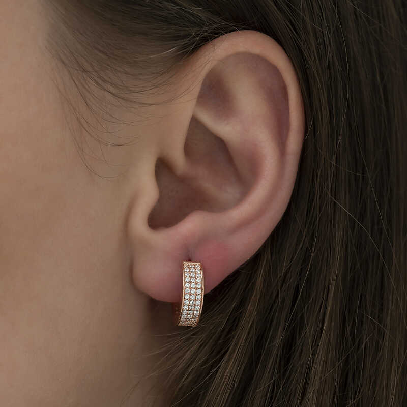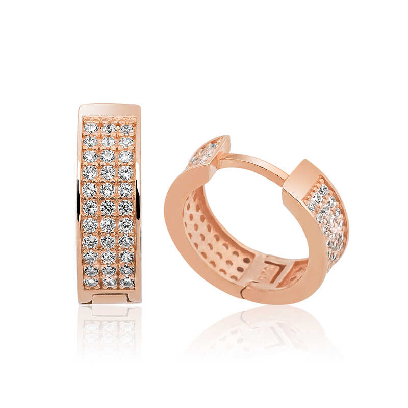 Gümüş Rose Sıra Taşlı Halka Küpe