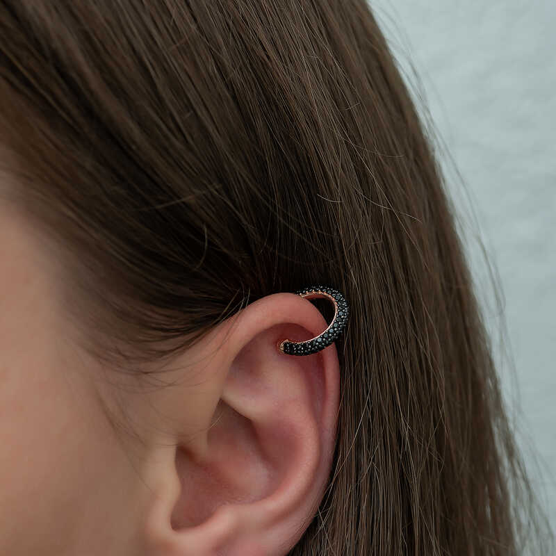 Gümüş Rose Siyah Taşlı Halka Kıkırdak Küpe