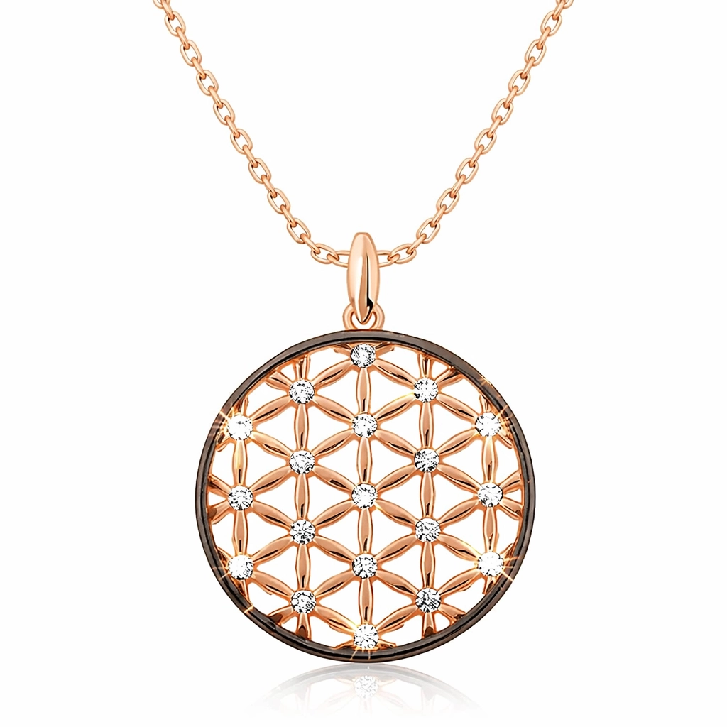 Yaşam çiçeği, iç içe geçmiş eşit alana sahip çok sayıda çember ve dışında büyük bir çemberden oluşan geometrik şekilden oluşmaktadır. Her bir çemberin merkezi, çevresindeki altı çemberin çevrelerinin kesiştiği yerdedir. Drunvalo Melchizedek bu sembolün evrenin ve yaşamın sırlarını barındırdığını iddia etmektedir. Günün her anında severek kullanabileceğiniz hoş bir aksesuardır. Gümüş yaşam çiçeği bayan kolye 925 ayar gümüşten imal edilmiştir. Bu kolye üzerine rose altın kaplama yapılmıştır. Rose altın kaplama yapılan ürünler parlaklığını uzun süre muhafaza eder ve gümüşü bakır rengine dönüştürür. Tüm gümüş bayan kolye modellerinde olduğu gibi gümüş yaşam çiçeği bayan kolye modeli de el emeği ile üretilmiştir. Gümüş ve değerli taşlar nedeniyle belirtilen ortalama ürün ağırlığında ± %10 sapma olabilmektedir. Ürünlerimizin tamamı el emeği ile üretilmiştir.