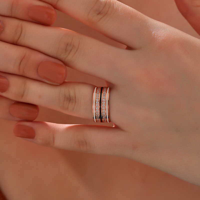 Gümüş Rose Zirkon Taşlı Kadın Yüzük