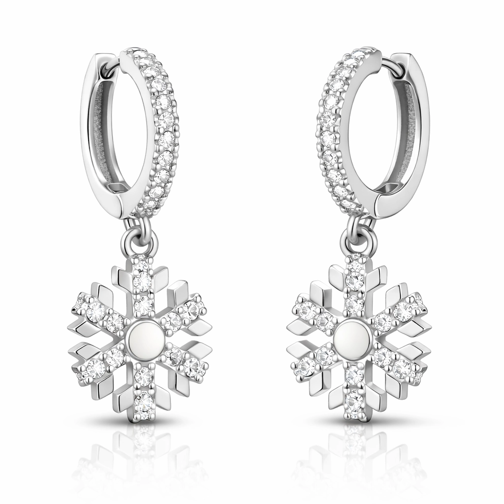 Kadınların ışıltısı, berraklığı kar tanesine benzetilip özel olarak tasarlanmıştır. Kar tanelerinin her birinin bayanlar gibi eşsiz ve ayrı kıymette olması onları özel kılan bir diğer özelliktir. Asilliği her dönemde dikkat çekmeyi başarmıştır. Bunun yanında insanların tıpkı kar taneleri gibi birbirlerine zarar vermeden de mutlu bir şekilde yaşayabileceklerini sembolize etmektedir. Bu şık küpe; 925 ayar gümüşten imal edilmiştir. Gümüş üzerine rodyum kaplama yapılmıştır. Rodyum kaplama yapılan gümüş küpeler parlaklığını uzun süre muhafaza eder,oksitlenmesi gecikir. Üzerinde bulunan taşlar zirkondur. Gümüş küpelerin tamamında olduğu gibi gümüş sallantılı kar tanesi bayan küpe de el emeği ile üretilmiştir. Gümüş ve değerli taşlar nedeniyle belirtilen ortalama ürün ağırlığında ± %10 sapma olabilmektedir.