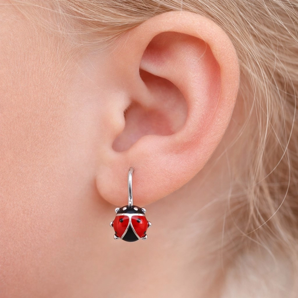 Gümüş Sallantılı Uğur Böceği Çocuk Küpesi