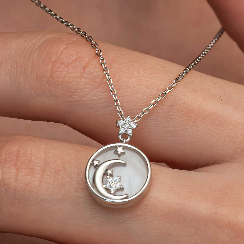 Gümüş Sedef Taşlı Ay Yıldız Hilal Kadın Kolye