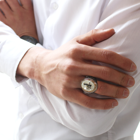 Gümüş Sedef Üzeri Tuğralı Erkek Yüzük