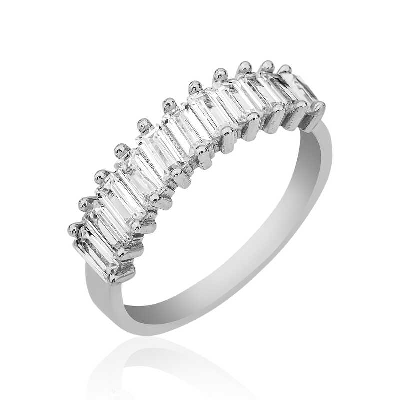 Gümüş Sıralı Baget Taşlı Bayan Yüzük