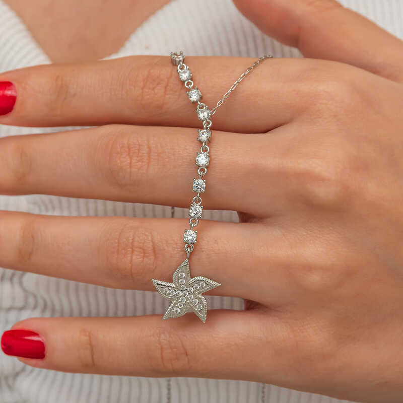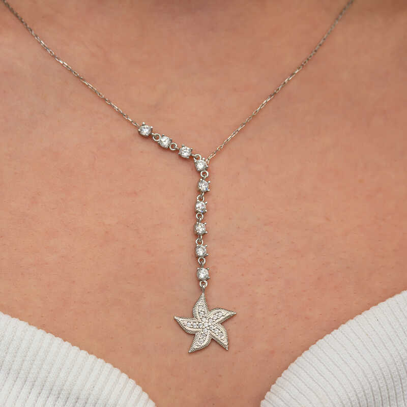 Gümüş Sıralı Zirkon Taşlı Deniz Yıldızı Kadın Kolye