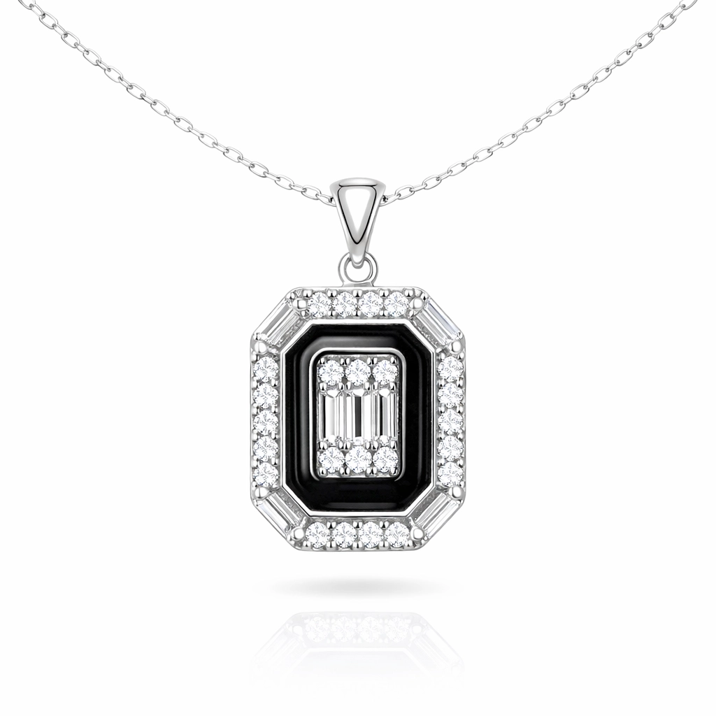 Modası hiçbir zaman geçmeyecek olan baget taşlı kadın kolye, günümüz takıları ile farklı stillerde yeniden yorumlanıyor.Klasik siyah-beyaz kontrastı, her tarzla uyum sağlar.Bu şık kolye; doğum günü hediyesi, sevgililer günü veya özel günlerde tercih edilebilecek mükemmel bir seçenektir.Kolye; 925 ayar gümüşten imal edilmiştir. Gümüş üzerine rodyum kaplama yapılmıştır. Gümüş ve değerli taşlar nedeniyle belirtilen ortalama ürün ağırlığında ± %10 sapma olabilmektedir.