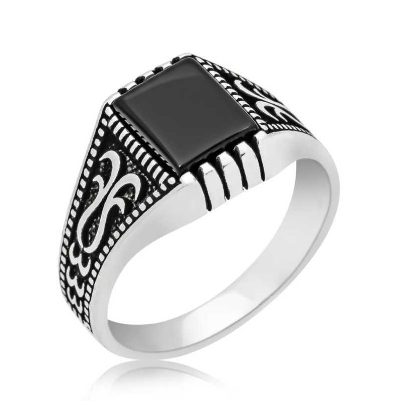 Gümüş Siyah Onix Taşlı Erkek Yüzük