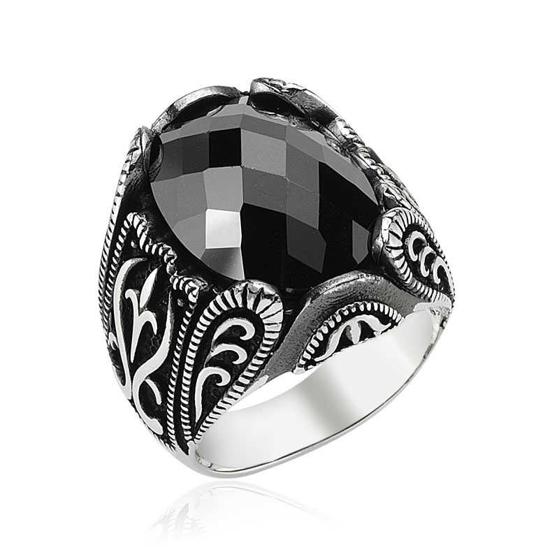 Erkekler kendilerine takı beğenirken klasik ve spor binlerce çeşit arasından tercihlerini yaparlar. En kaliteli ve şık gümüş yüzükler erkeklerin beğenisine sunulmaktadır. Bir kadını etkilemenin yolu neden hoş bir gümüş yüzük olmasın? Siz de sevdiklerinize gümüş gümüş siyah taşlı erkek yüzüğü hediye edebilir onları sevindirebilirsiniz. Siyah taşlı erkek yüzük 925 ayar gümüşten imal edilmiştir. Gümüş üzerine oksit kaplama yapılmıştır. Oksit kaplama yapılan gümüş erkek yüzük modelleri otantik bir görünüme kavuşur. Yüzük Yüzük üzerinde bulunan siyah taş onikstir. Tüm gümüş erkek yüzük modellerinde olduğu gibi gümüş siyah taşlı erkek yüzük modeli de tamamen el emeği ile üretilmiştir. Gümüş ve değerli taşlar nedeniyle belirtilen ortalama ürün ağırlığında ± %10 sapma olabilmektedir.