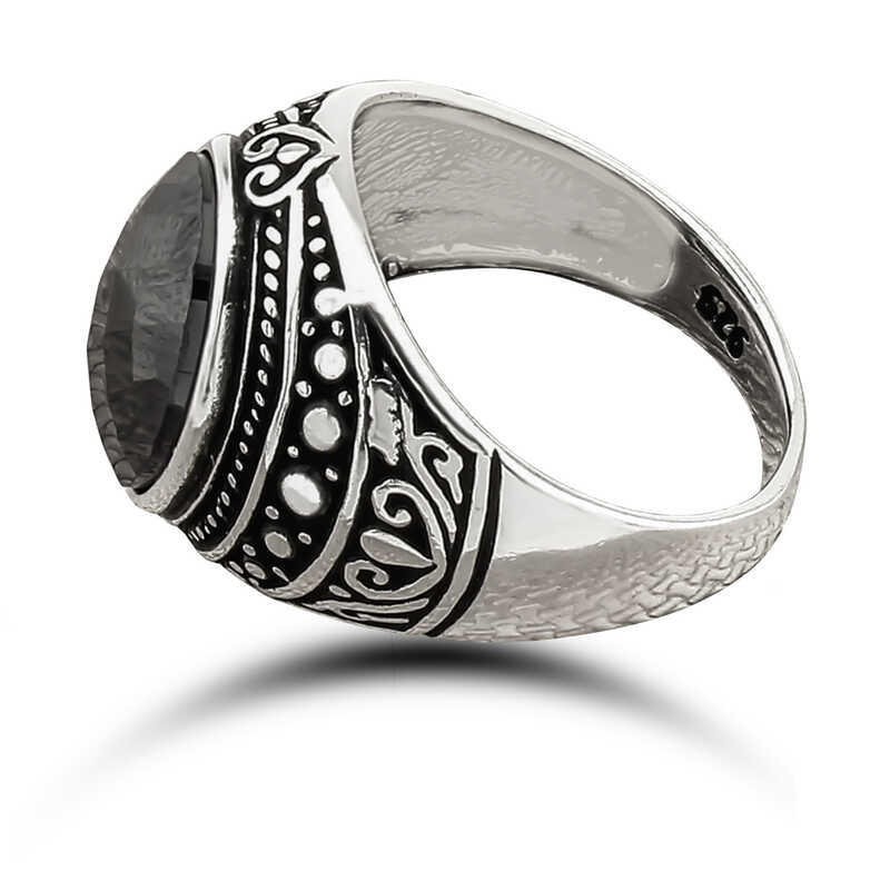Gümüş Siyah Zirkon Taşlı Oval Erkek Yüzük