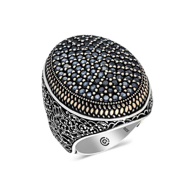 Gümüş Siyah Zirkon Taşlı Oval Erkek Yüzük