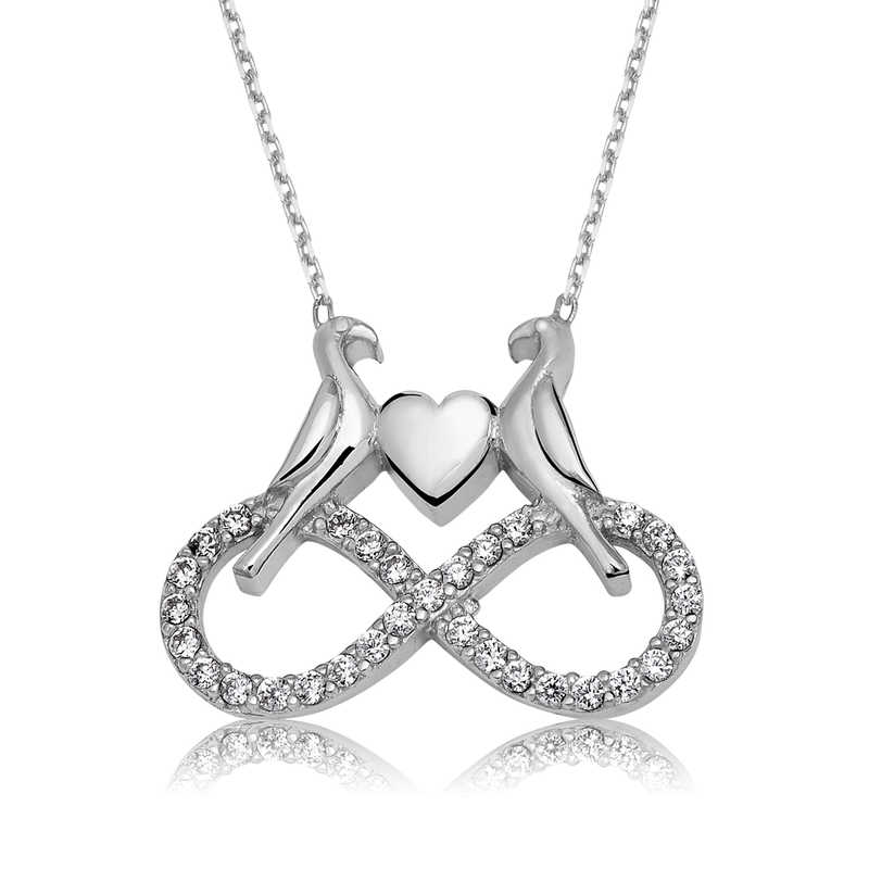 Sevgilinize sonsuz aşkı ifade etmenin en güzel ve en anlamlı yollarından biri sonsuzluk kolyesidir. Şık tasarımıyla bu özel kolye ile sevdiğinize olan sonsuz aşkınızı ifade edebilir, sonsuza kadar birlikte olacağınız mesajı verebilirsiniz. Gümüş sonsuzluk bayan kolye ile sevilen ve şıklığından ödün vermeyen bu modeli; doğum günü hediyesi, sevgililer günü hediyesi veya annelere hediye olarak özel günlerde tercih edebilirsiniz. Gümüş sonsuz aşk bayan kolye 925 ayar gümüşten imal edilmiştir. Gümüş üzerine rodyum kaplama yapılmıştır. Rodyum kaplama yapılan gümüş bayan kolyeler parlaklığını uzun süre muhafaza eder, oksitlenmesi gecikir. Üzerinde bulunan taşlar zirkondur. Zincir boyu ortalama 45 cm"dir. Tüm gümüş bayan kolyelerde olduğu gibi bu gümüş sonsuz aşk bayan kolye modeli de tamamı el emeği ile üretilmiştir. Gümüş ve değerli taşlar nedeniyle belirtilen ortalama ürün ağırlığında ± %10 sapma olabilmektedir.