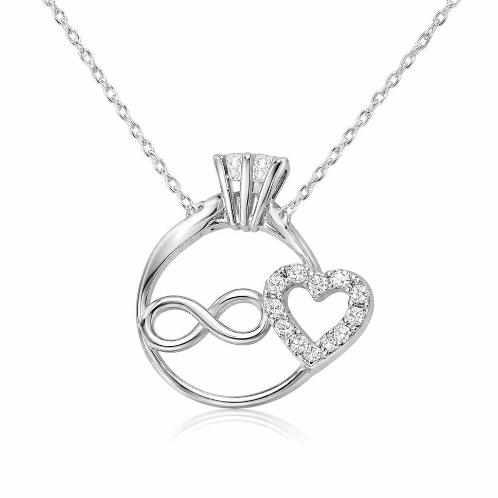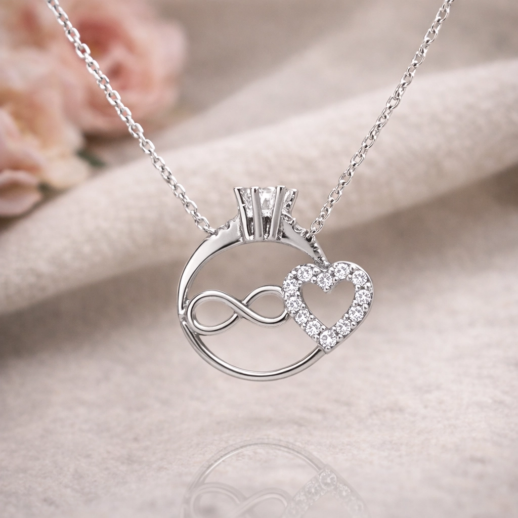 Gümüş Sonsuzluk Kalpli Tek Taş Bayan Kolye