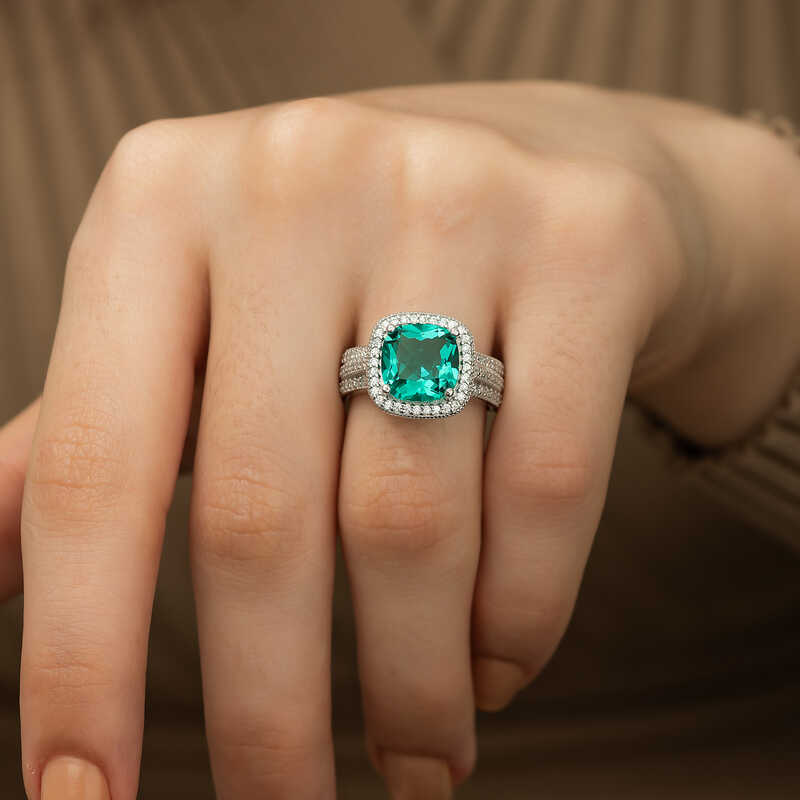 Gümüş Turkuaz Baget Bayan Yüzük