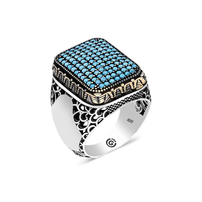 Gümüş Turkuaz Zirkon Taşlı Kare Erkek Yüzük