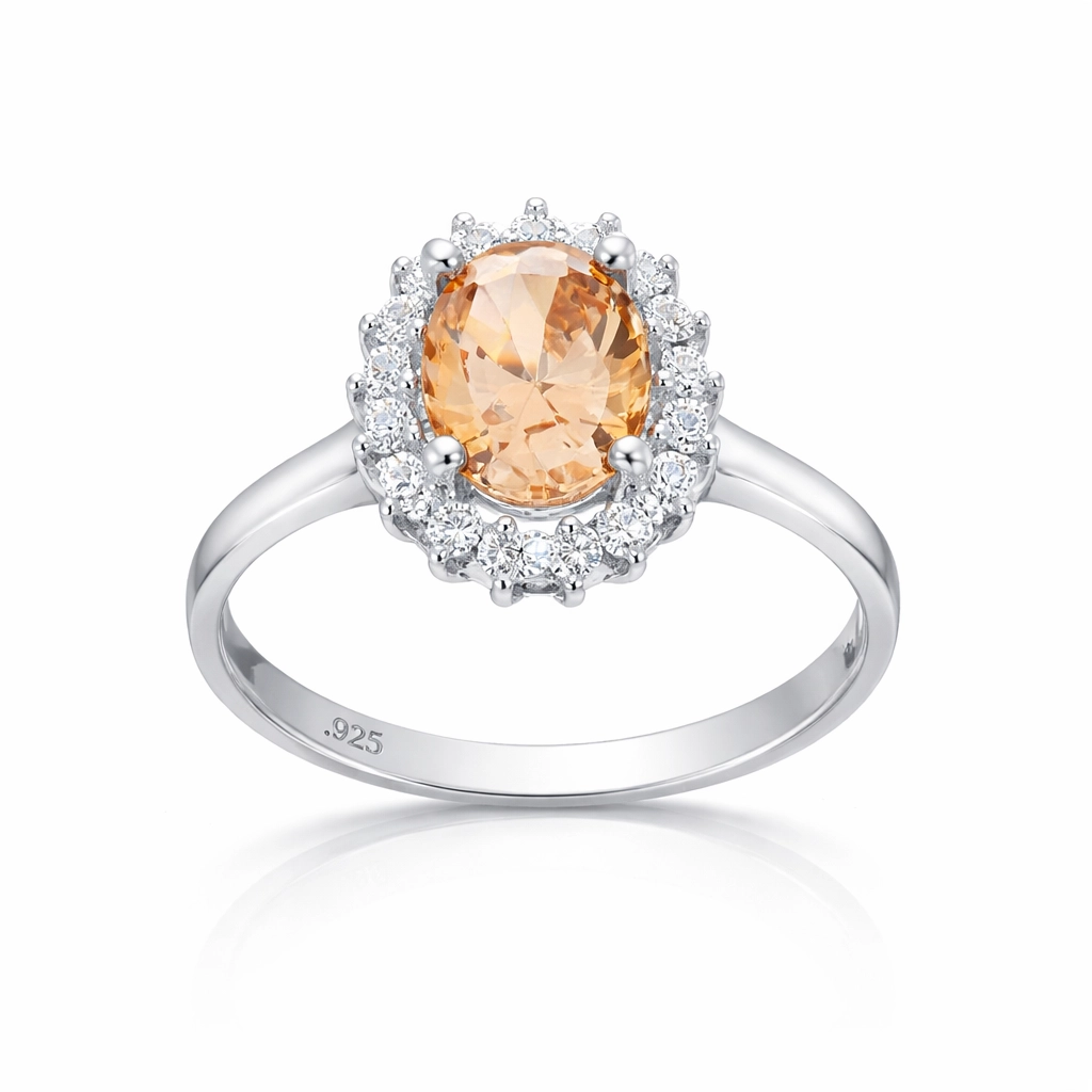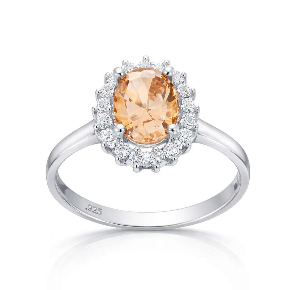 Gümüş Turuncu Taşlı Oval Kadın Yüzük