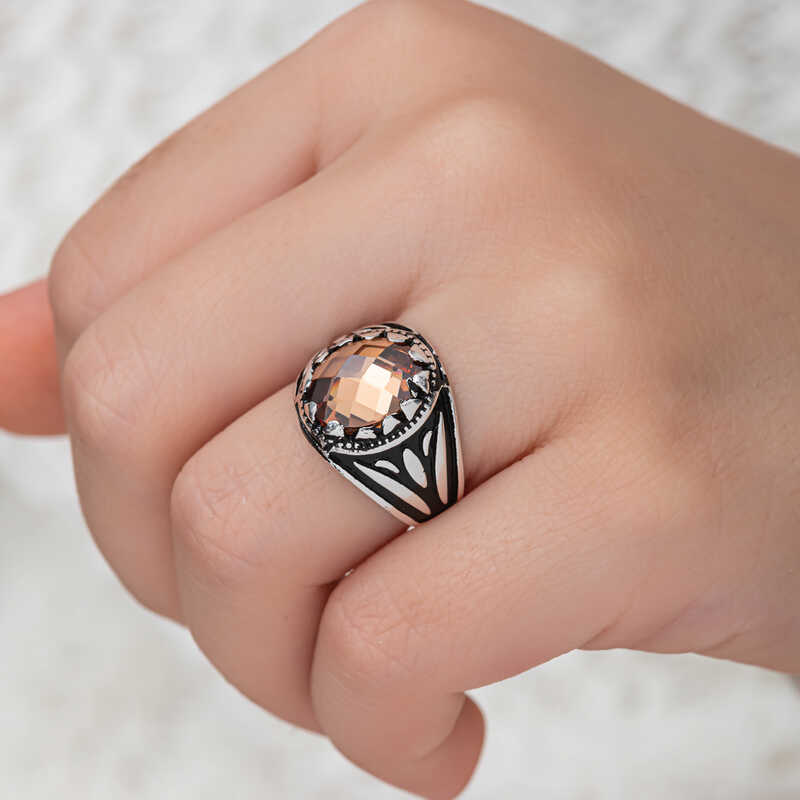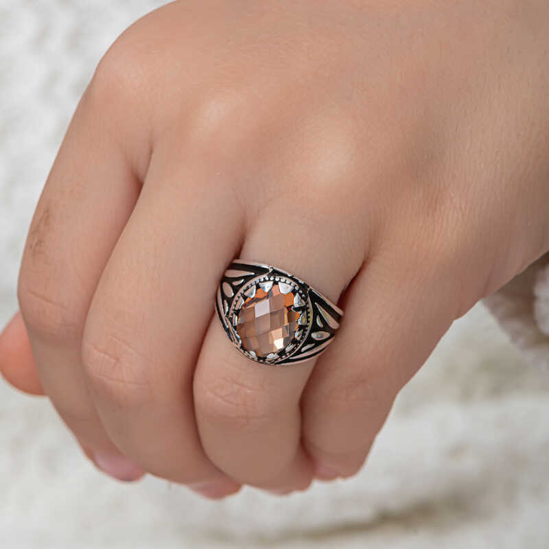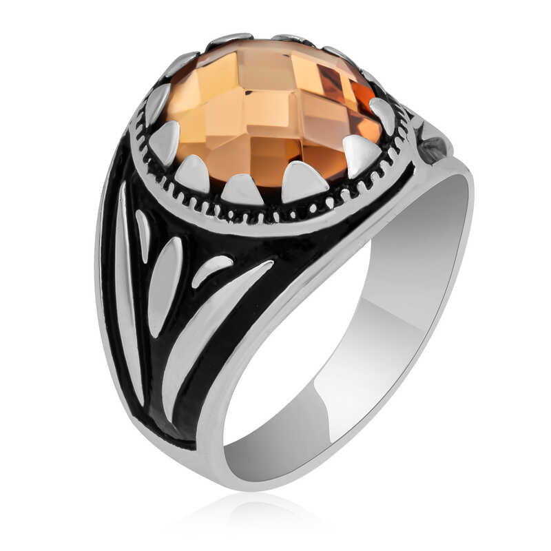 Gümüş Turuncu Zirkon Taşlı Çocuk Erkek Yüzük