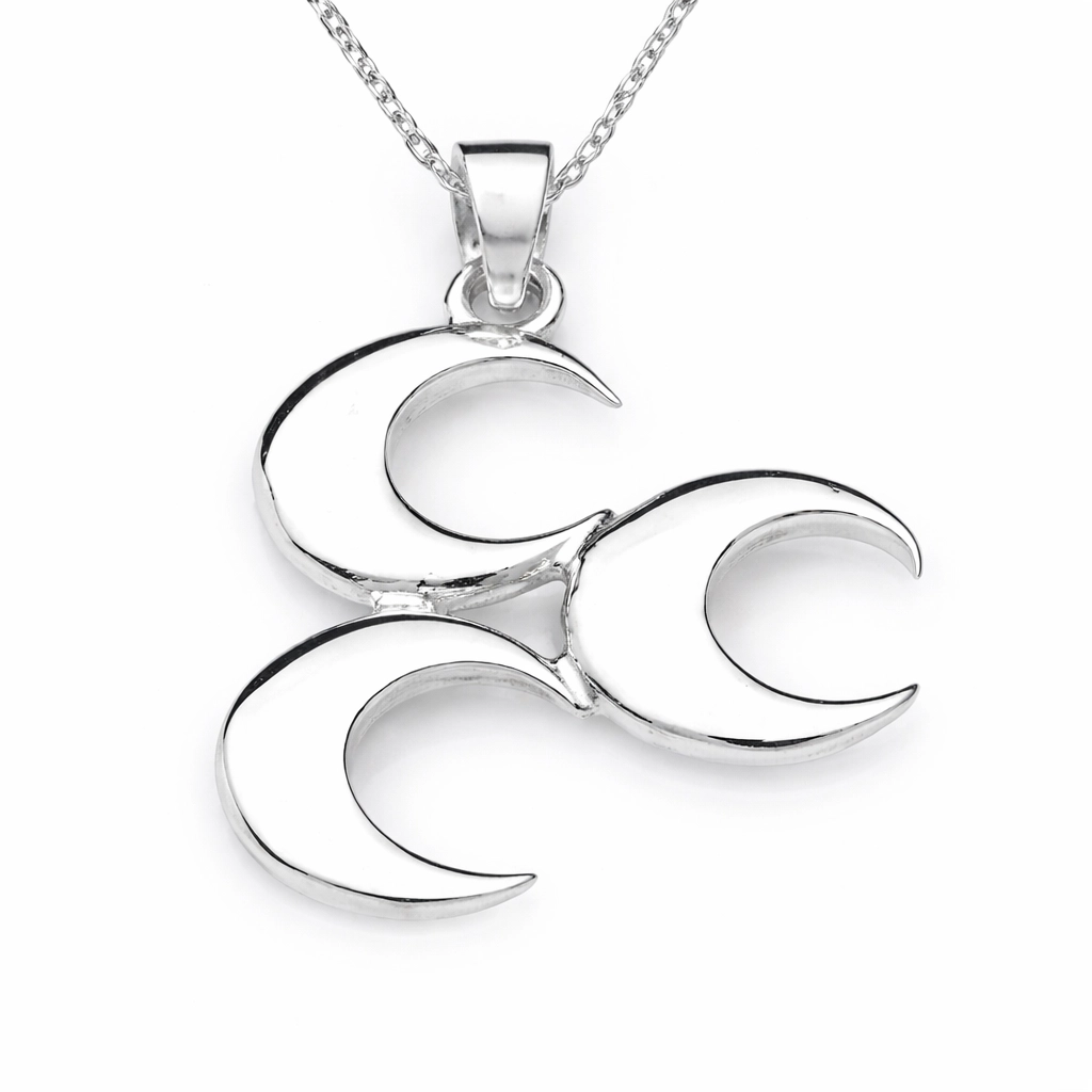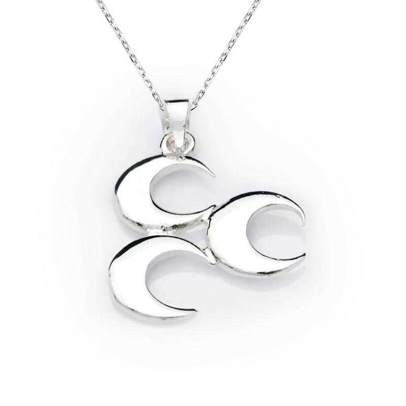 Üç tane hilal adalet, ahlak ve iman anlamlarını simgeler. İslamın üç kıtaya hükmetmesini sembolize eder. Osmanlı Devleti bu bayrağı kullanıp üç kıtaya da hükmetmiştir.Bir başka rivayete göre de İslam dinindeki Recep, Şaban ve Ramazan aylarını temsil eder.Günümüzde de üç hilal türk milliyetçiliğinin sembolü haline gelmiştir. Takılarda da üç hilal motifine sıklıkla rastlanmaktadır. Gümüş takı modellerinin vazgeçilmez sembolü olan üç hilal bu özel kolye modelinde hayat buluyor. Üç hilal kolye modeli 925 ayar gümüşten imal edilmiştir. Kolye üzerine mikro gümüş kaplama yapılmıştır. Mikro gümüş kaplama yapılan gümüş üç hilal kolye modelleri parlak bir görünüme kavuşur. Kolye ucu ile birlikte gelecek zincir 925 ayar gümüşten imal edilmiş olup 45 cm uzunluğundadır. Gümüş üç hilal kolye modelinde olduğu gibi tüm gümüş kolye modelleri tamamen el emeği ile üretilmiştir. Gümüş ve değerli taşlar nedeniyle belirtilen ortalama ürün ağırlığında ± %10 sapma olabilmektedir.