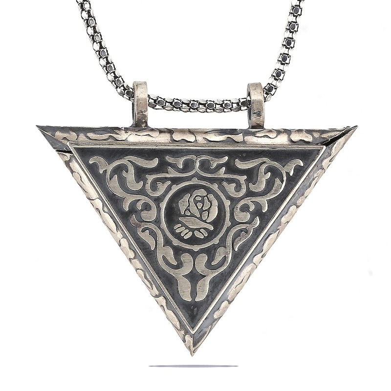 Gümüş Üçgen İçi Açılabilen Gül Muskalık Kolye