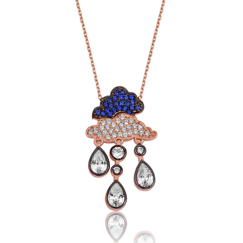 Kolye; doğum günü hediyesi, sevgililer günü hediyesi veya annelere hediye olarak özel günlerde tercih edilebilecek mükemmel bir seçenektir. Bu anlamlı ve şık kolye; 925 ayar gümüşten imal edilmiştir. Bu bayan gümüş kolye üzerine rose kaplama yapılmıştır. Rose kaplama yapılan tüm kolyeler parlaklığını uzun süre muhafaza eder, gümüşü pembe renge dönüştürür ve oksitlenmeyi geciktirir. Zincir boyu ortalama 45 cm"dir. Yağmur bulutu bayan kolye üzerinde bulunan taşlar zirkondur. Tüm gümüş kolyelerde olduğu gibi bu gümüş yağmur bulutu bayan kolye de el emeği ile üretilmiştir. Gümüş ve değerli taşlar nedeniyle ürün ağırlığında ± %10 sapma olabilmektedir.
