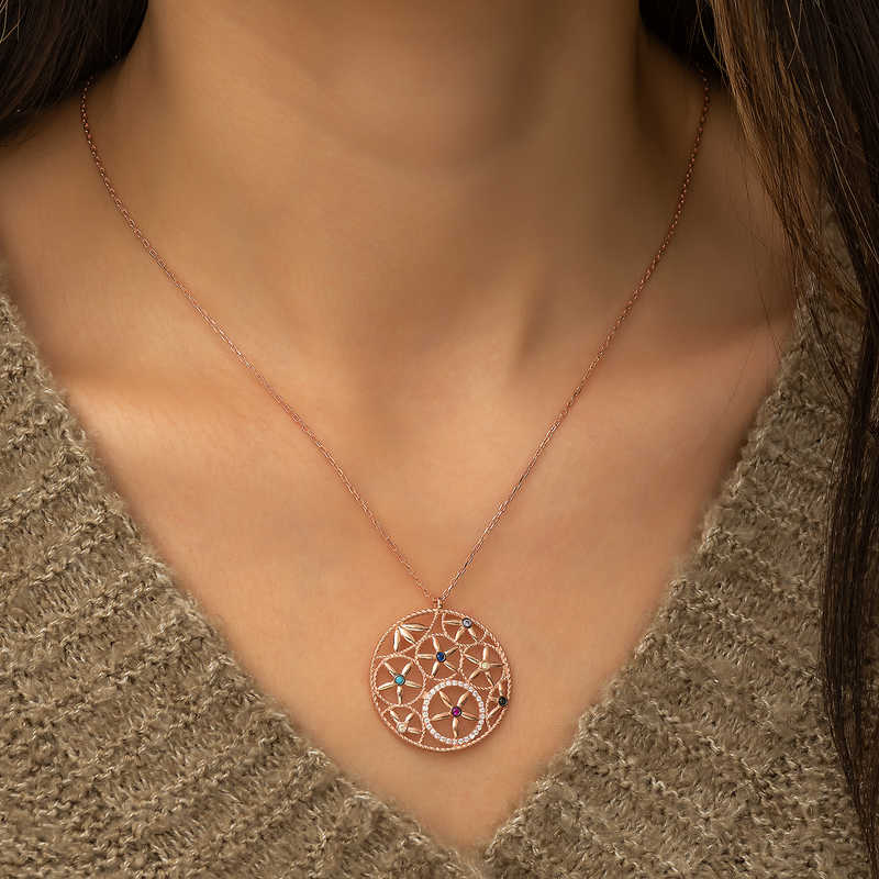 Yaşam çiçeği, iç içe geçmiş eşit alana sahip çok sayıda çember ve dışında büyük bir çemberden oluşan geometrik şekilden oluşmaktadır. Her bir çemberin merkezi, çevresindeki çemberin çevrelerinin kesiştiği yerdedir. Drunvalo Melchizedek bu sembolün evrenin ve yaşamın sırlarını barındırdığını iddia etmektedir. Günün her anında severek kullanabileceğiniz hoş bir aksesuardır. Gümüş yaşam çiçeği bayan kolye 925 ayar gümüşten imal edilmiştir. Bu kolye üzerine rose  kaplama yapılmıştır.Rose kaplama yapılan ürünler parlaklığını uzun süre muhafaza eder ve gümüşü bakır rengine dönüştürür. Tüm gümüş bayan kolye modellerinde olduğu gibi gümüş yaşam çiçeği bayan kolye modeli de el emeği ile üretilmiştir. Gümüş ve değerli taşlar nedeniyle belirtilen ortalama ürün ağırlığında ± %10 sapma olabilmektedir. Ürünlerimizin tamamı el emeği ile üretilmiştir.