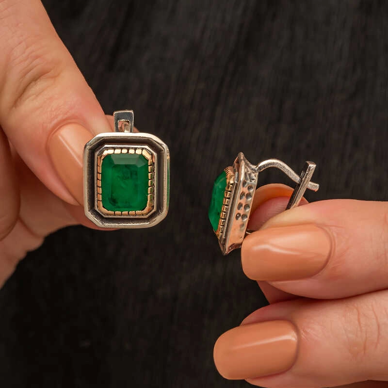 Yeşil taşlı otantik küpe geleneksel ve modern tarzları bir araya getirerek stilinize ikonik bir dokunuş katıyor.Hem bohem hem de klasik stillerle mükemmel bir uyum sağlar.Doğum günü hediyesi, sevgililer günü hediyesi veya annelere hediye olarak özel günlerde tercih edilebilecek mükemmel bir seçenektir.Gümüş yeşil otantik küpe 925 ayar gümüşten imal edilmiştir. Gümüş üzerine rodyum kaplama yapılmıştır. Rodyum kaplama yapılan gümüş otantik kadın küpe parlaklığını uzun süre muhafaza eder ve oksitlenmesi gecikir. Tüm kadın küpelerde olduğu gibi gümüş otantik kadın küpe de el emeği ile üretilmiştir. Gümüş ve değerli taşlar nedeniyle belirtilen ortalama ürün ağırlığında ± %10 sapma olabilmektedir.