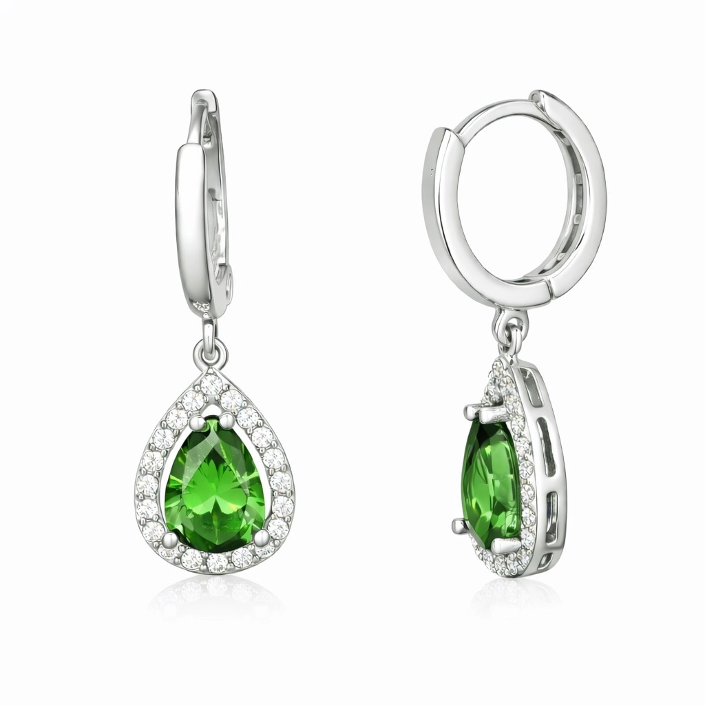 Gümüş Yeşil Zirkon Taşlı Damla Kadın Küpe