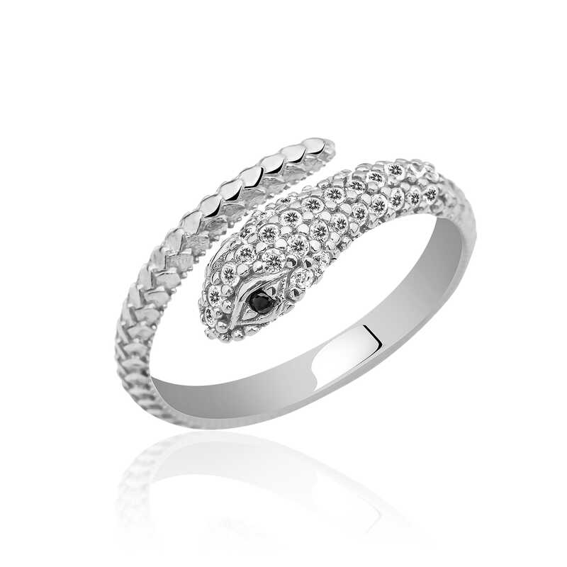 Mitolojide yılan figürü oldukça popüler bir kavram olarak karşımıza çıkmaktadır. Birçok kültür yılana farklı anlamlar vermektedir. Yaşam süreci ve yaşamını sürdürdüğü elverişsiz koşullar, yer altından yeryüzüne açılan deliklerden yüzeye çıkması, vücut dış yüzeyinden kansız bir şekilde sıyrılarak kendini yenilemesi nedeniyle insanlar tarafından sıklıkla ölüm ve yeniden doğuşun sırrına sahip bir hayvan olarak algılanmasına neden olmuştur. Zaman zaman da aynı nedenden ötürü tıp ile ilişkilendirilmiştir. Ayrıca yılanın besini bütün olarak yutması ve karnında uzun süre saklaması "ana karnına dönüş" ile özdeşleştirilmiş ve bu nedenle yılan pek çok mitolojide ölümü takiben yeniden doğuşu sembolize eder olmuş ve "yaratıcı" görevi üstlenmiştir. Siz de farklı kültürlerde farklı anlamlar taşıyan gümüş yılan yüzüğü sevdiklerinize armağan edebilir ya da kendinizi ödüllendirebilirsiniz. Bu şık yüzük; doğum günü hediyesi, sevgililer günü veya özel günlerde tercih edilebilecek mükemmel bir seçenektir. Yüzük; 925 ayar gümüşten imal edilmiştir. Parmak kalınlığına göre ayarlanabilir bir yüzüktür. Gümüş üzerine rodyum kaplama yapılmıştır. Diğer yüzüklerde olduğu gibi gümüş yılan yüzük de el emeği ile üretilmiştir. Gümüş ve değerli taşlar nedeniyle belirtilen ortalama ürün ağırlığında ± %10 sapma olabilmektedir.