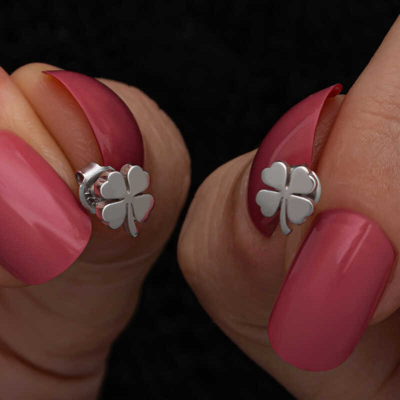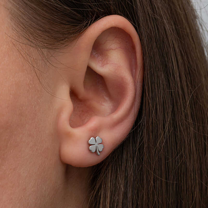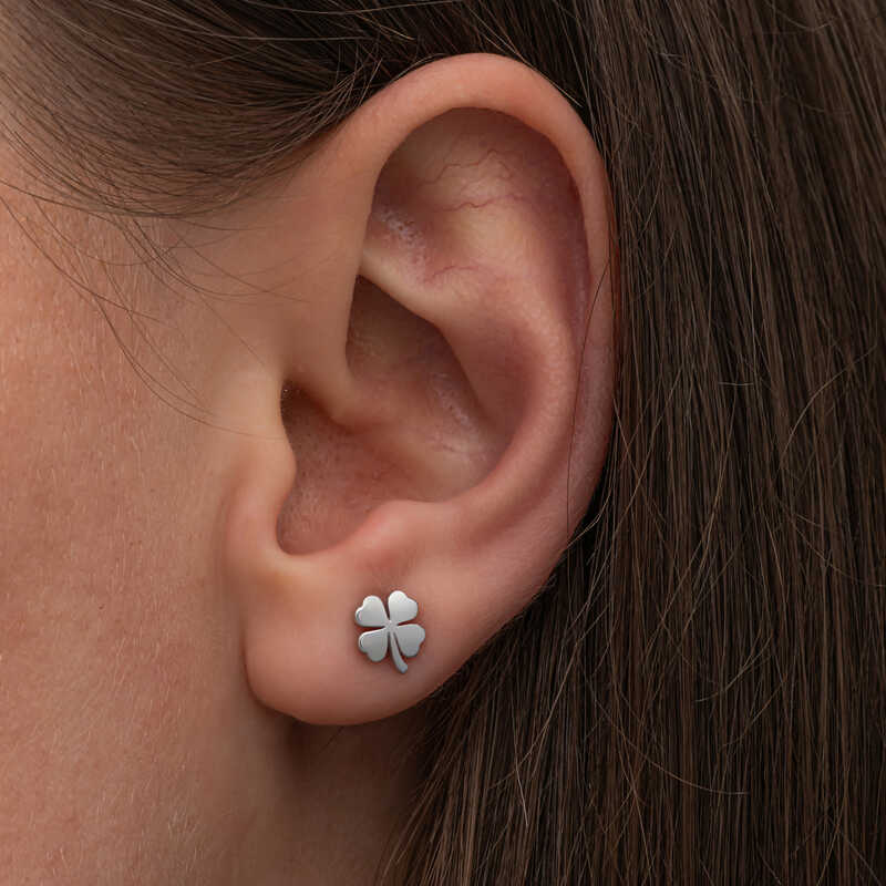 Gümüş Yonca Çivili Kadın Küpe