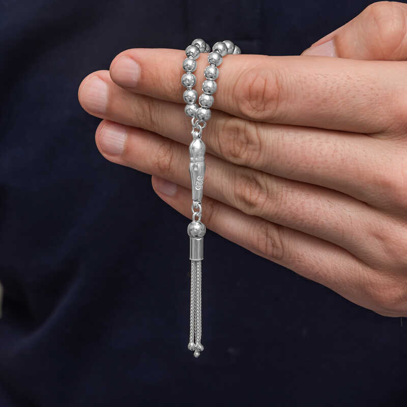 Gümüş Yuvarlak Küçük Boy Erkek Tesbih