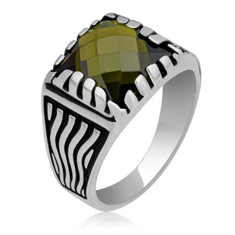 Gümüş Zeytin Yeşili Zirkon Taşlı Çocuk Erkek Yüzük