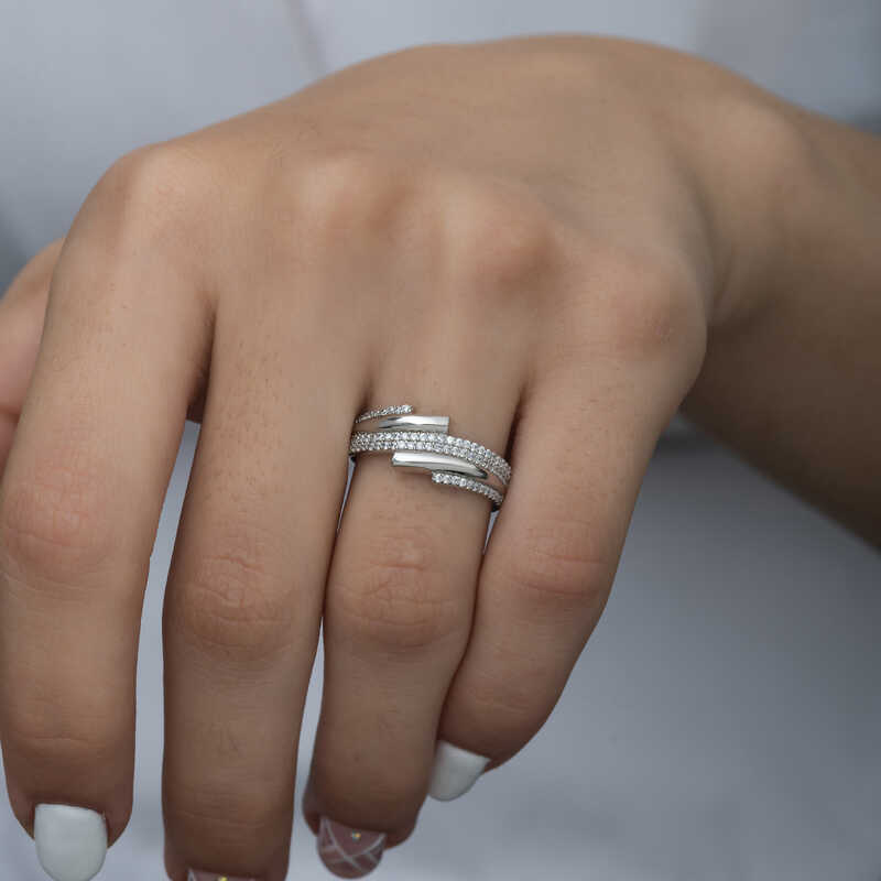 Gümüş Zirkon Taşlı Bayan Yüzük