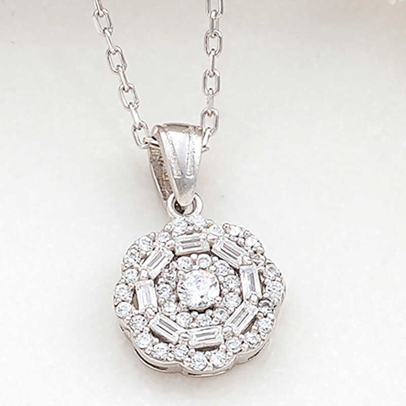 Gümüş Zirkon Taşlı Çiçek Kadın Kolye