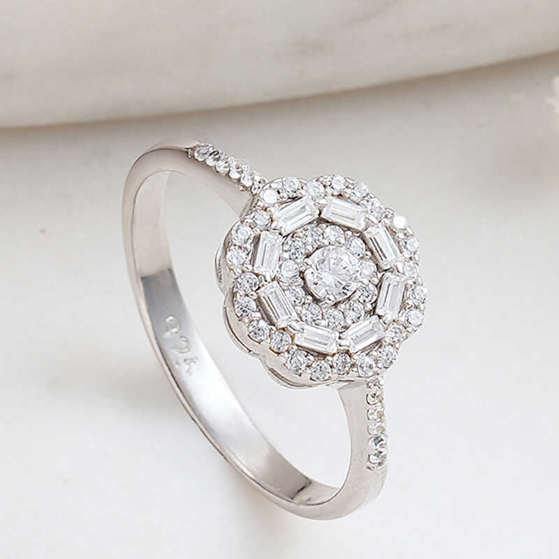 Gümüş Zirkon Taşlı Çiçek Kadın Yüzük