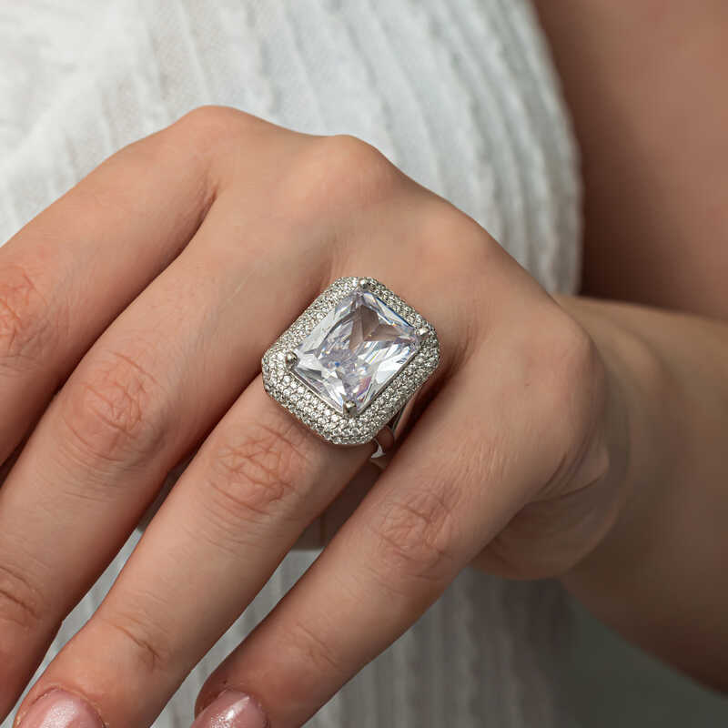 Kendine özen gösteren, şık olmayı benimseyen şehirli kadınların tercihi gümüş takı modelleri arasında en çok tercih edilen gümüş yüzüklerdir. Modernden klasiğe geniş bir yelpazede birbirinden şık gümüş kadın yüzük modelleri siz ve sevdikleriniz için özel olarak hazırlandı. 925 ayar gümüşten imal edilen zirkon taşlı kadın yüzük modeli üzerinde bulunan beyaz taşlar zirkondur. Yüzük üzerine rodyum kaplama yapılmıştır. Rodyum kaplama yapılan gümüş kadın yüzük modelleri parlaklığını uzun süre muhafaza eder, oksitlenmesi gecikir. Kadın yüzük modellerinin tamamında olduğu gibi gümüş zirkon taşlı kadın yüzük modeli de el emeği ile üretilmiştir. Gümüş ve değerli taşlar nedeniyle belirtilen ortalama ürün ağırlığında ± %10 sapma olabilmektedir.