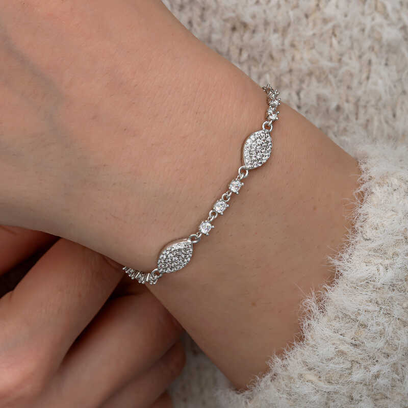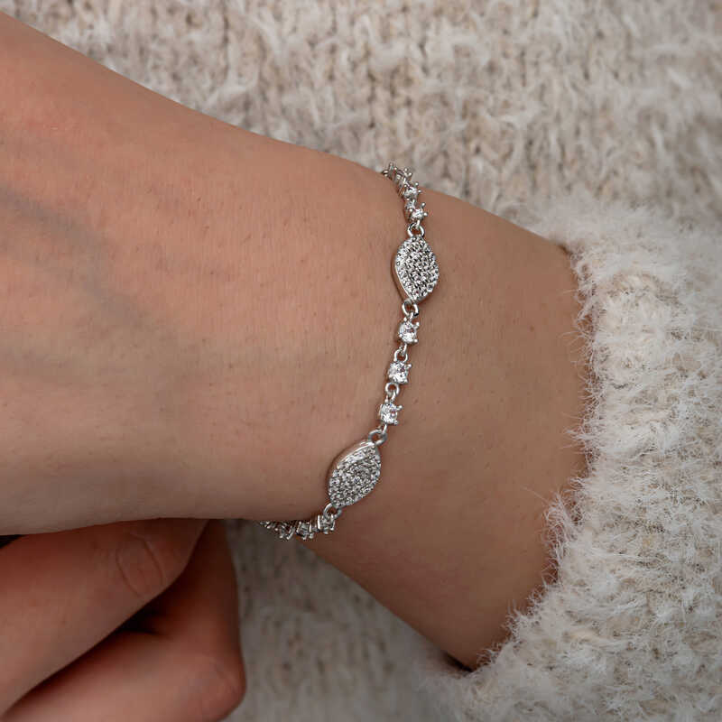 Gümüş Zirkon Taşlı Mekik Kadın Bileklik