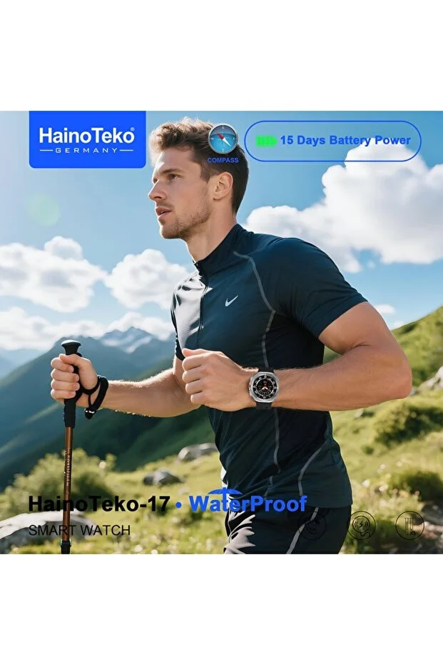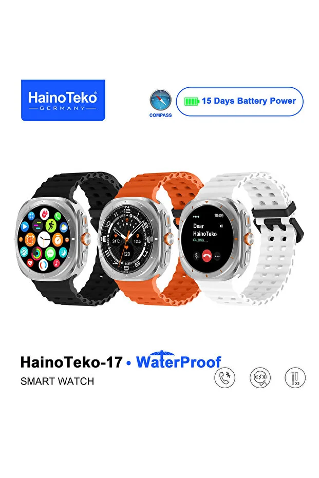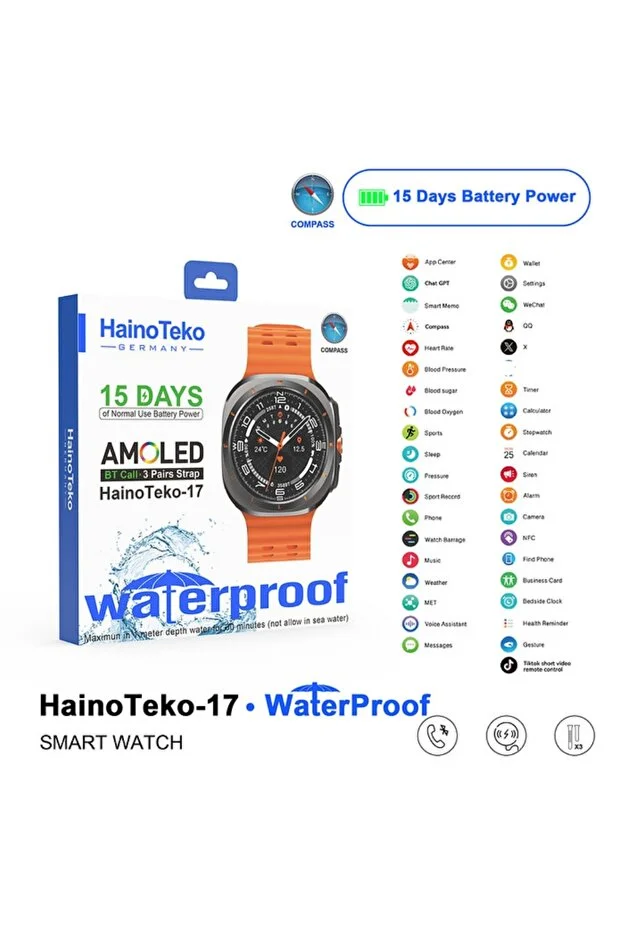 HainoTeko-17 Su Geçirmez Akıllı Saat – 15 Gün Pil, Pusula, AMOLED Ekran ve 3 Silikon Kordon