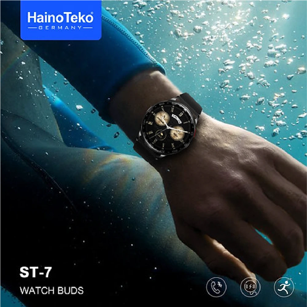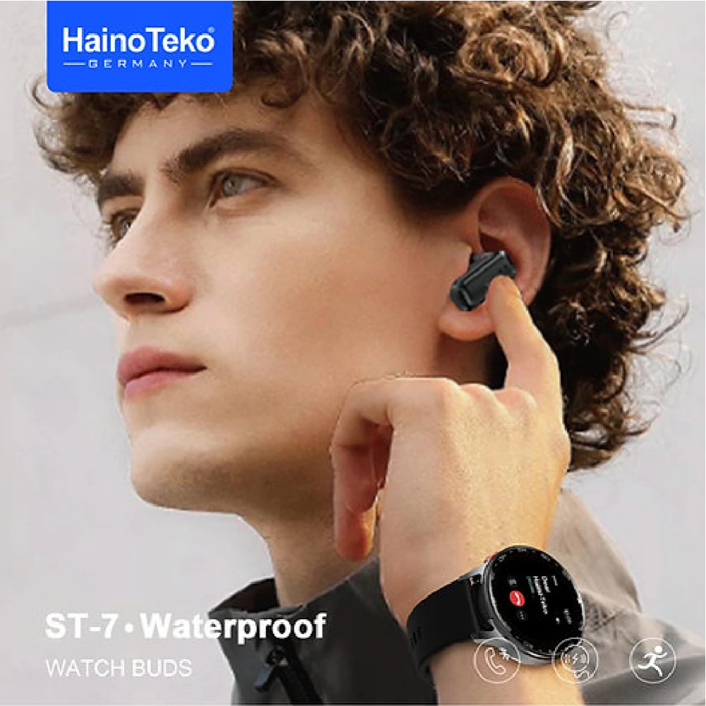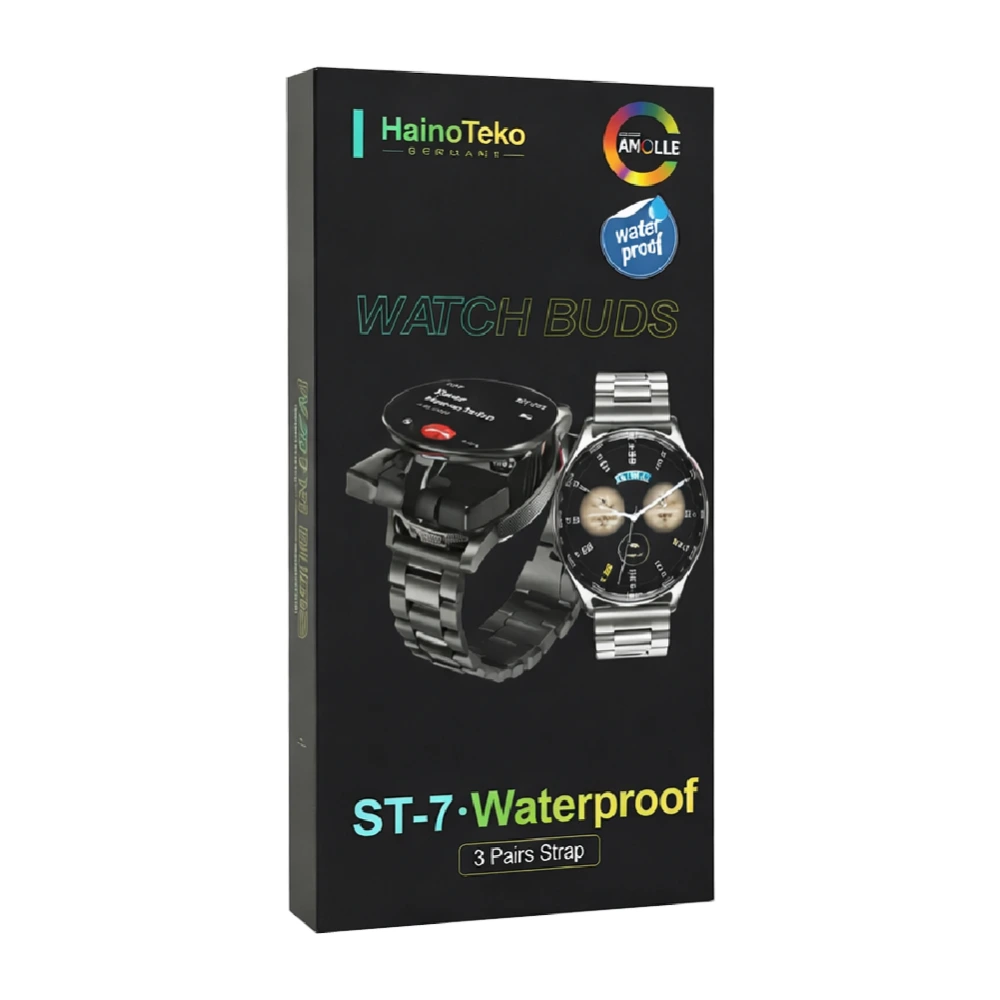 HainoTeko ST-7 akıllı saat, AMOLED ekranı ve entegre kulaklık yapısı ile çok yönlü kullanım sunan bir akıllı saat modelidir. Watch Buds özelliği sayesinde kulaklıklar saat ile birlikte kullanılabilir.