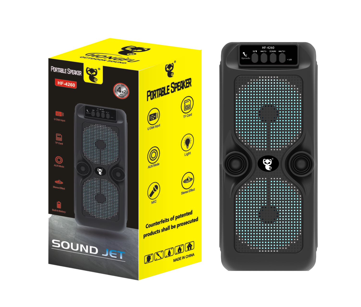 Hongfu HF-4260 Sound Jet Mikrofonlu Bluetooth Hoparlör Çift Hoparlörlü Taşınabilir Ses Sistemi