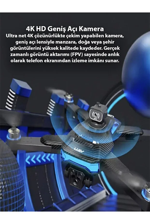 4K geniş açı kamera ile fotoğraf ve video çekimi yapılabilir. Wi-Fi FPV özelliği sayesinde mobil cihaz üzerinden canlı görüntü aktarımı izlenebilir. 2.4GHz uzaktan kumanda ile yaklaşık 100 metreye kadar kontrol mesafesi sunar.