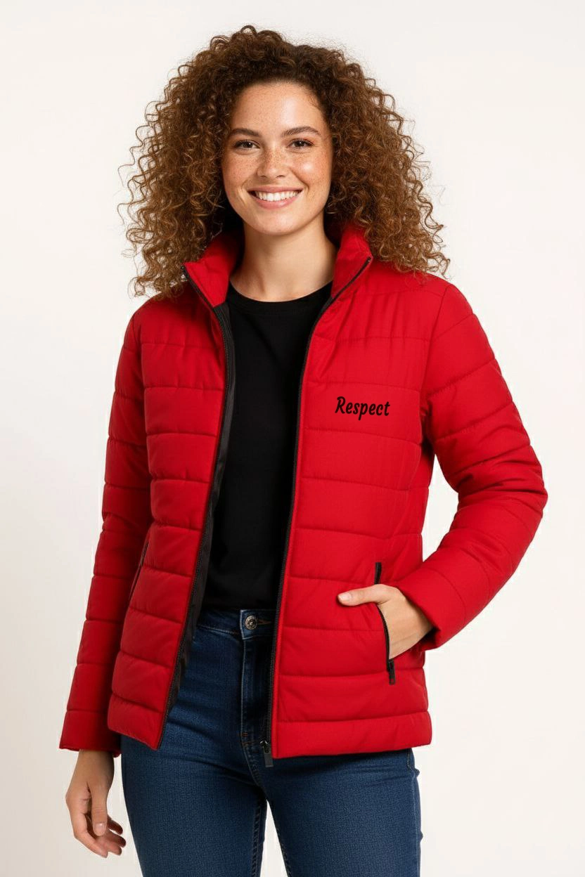Kadın Mikro Su İtici Kapitone Baskılı Astarlı Fermuarlı Bomber Mont – Kırmızı