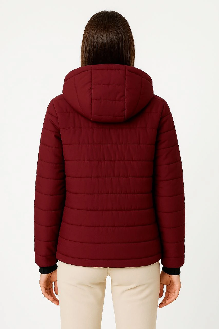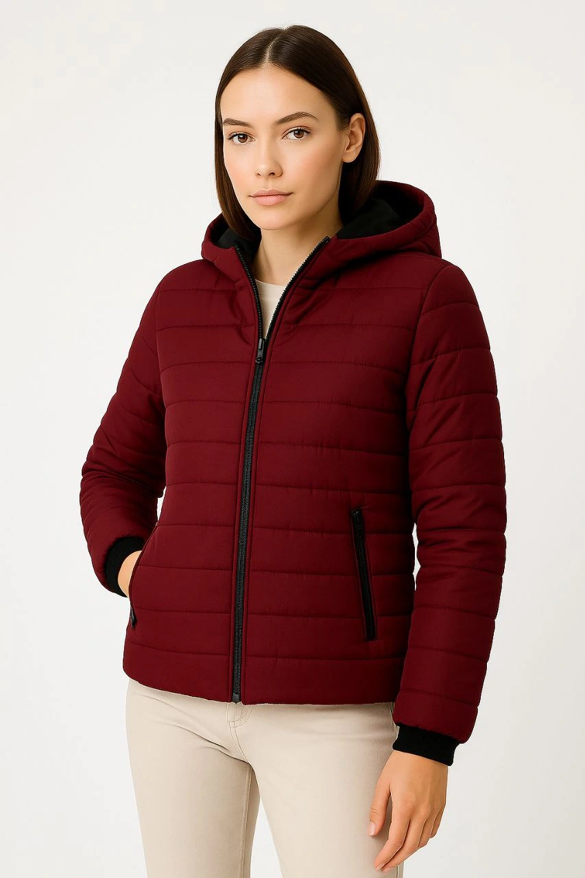 Kadın Şişme Kapüşonlu Fermuarlı Mont Su itici Kapitone Astarlı Cepli Kalıp – Bordo