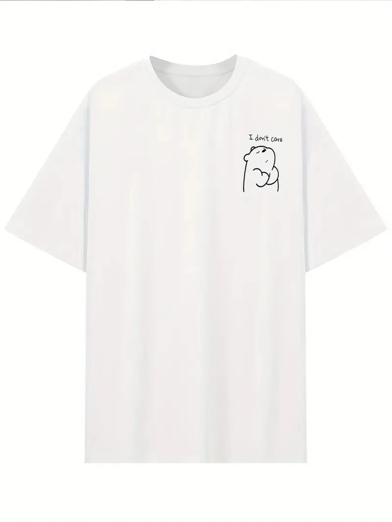Kadın T-Shirt Kısa Kollu, bisiklet Yaka, Eğlenceli Karikatür Ayı ve “Umrumda Değil” Baskı – Beyaz