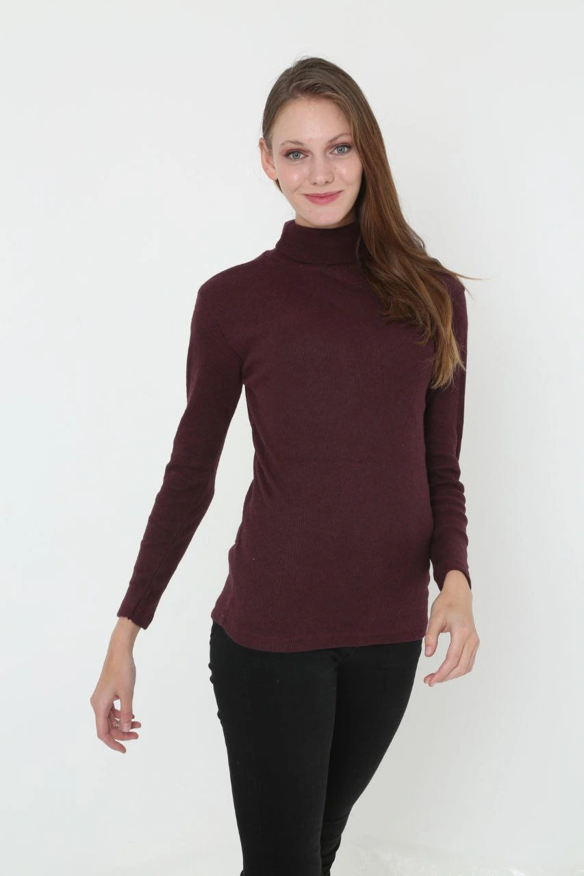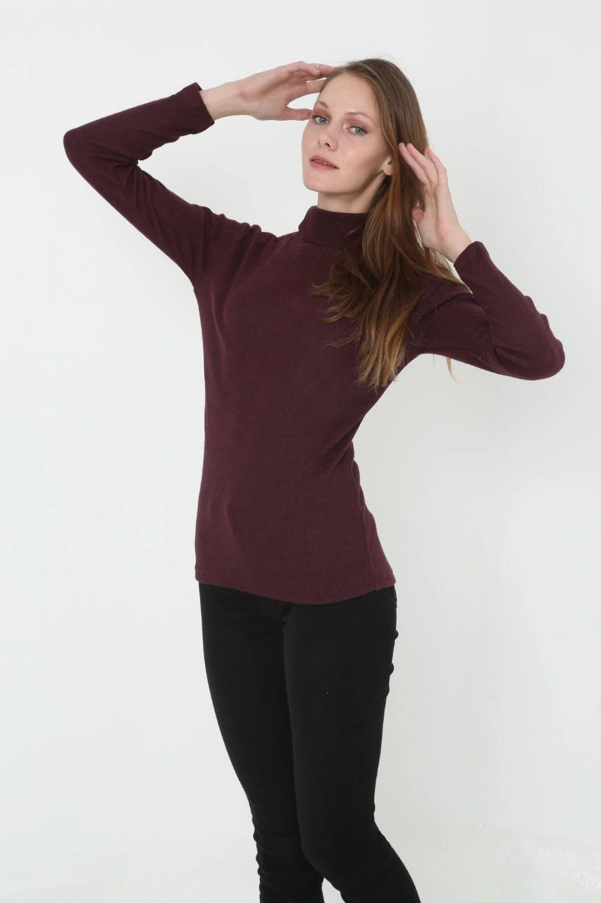 Kadın Tam Boğazlı Fitilli Likrali Koşkorse Badi – Bordo