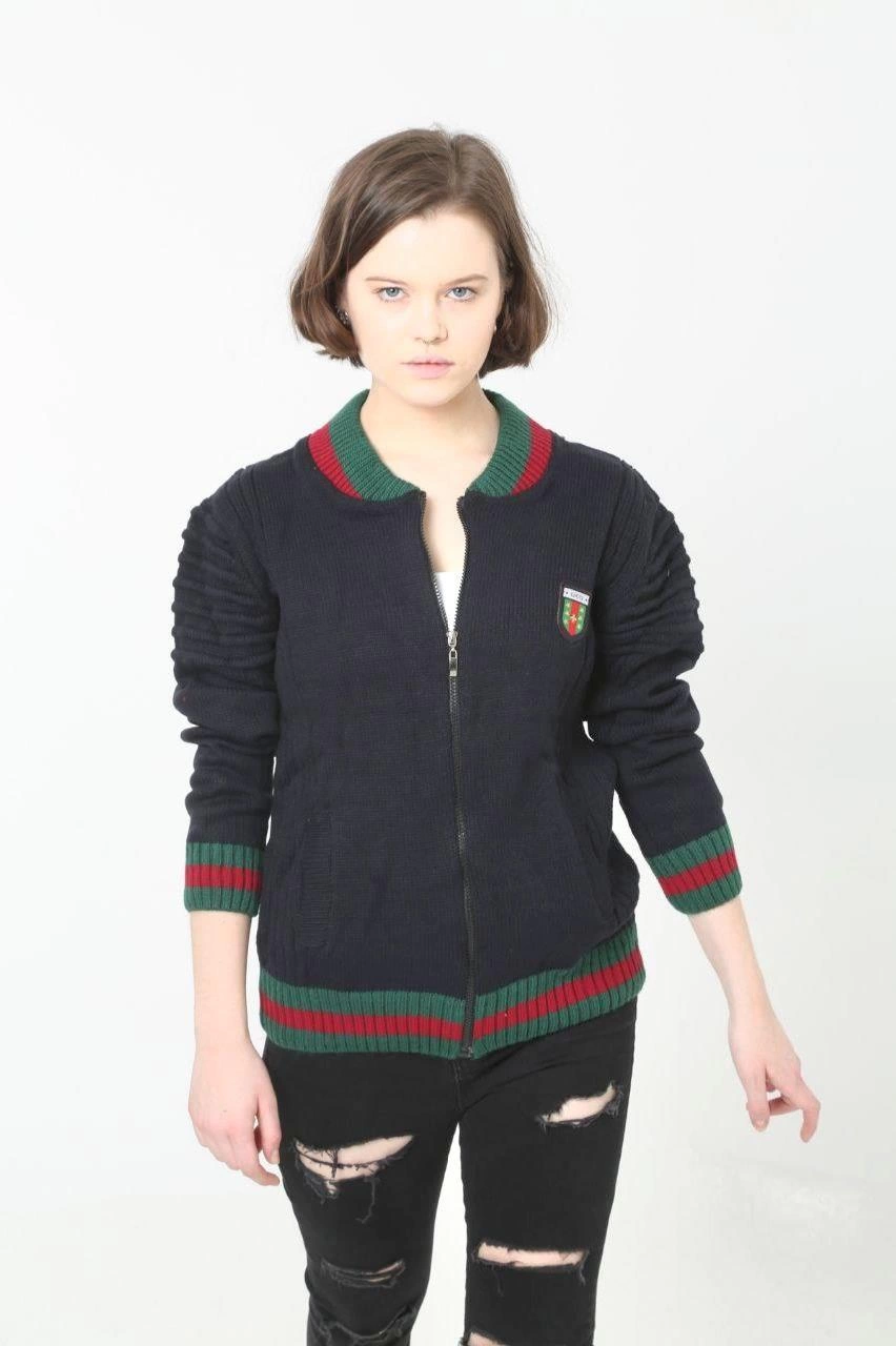 Kadın Tam Fermuarlı Triko Hırka – Lacivert