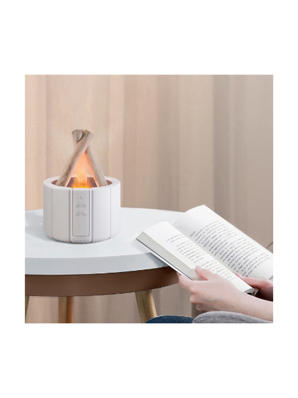 Kamp ateşi aromaterapi makinesi; 250ml su kapasitesi, alev efekti, USB çalışma ve ışıklı tasarımıyla hem nemlendirici hem de aroma difüzörü olarak kullanılır. Masaüstü kullanım için idealdir.