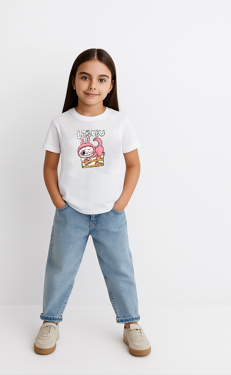 Kız Labubu Çocuk Baskılı T-Shirt – Beyaz