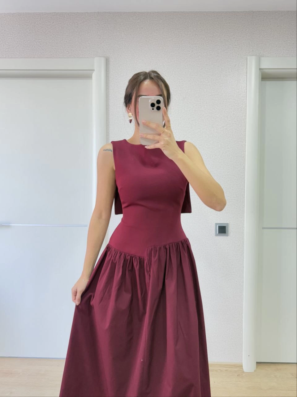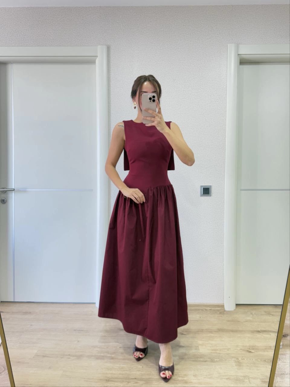 Be the first to review “Krep Arkası Kanat Arka Ön Pens Detaylı Uzun Kadın Elbise – Bordo”