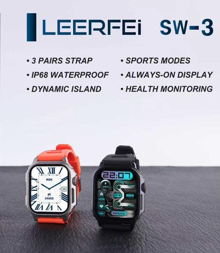 Leerfei SW-3 akıllı saat, suya dayanıklı yapısı ve çift kordon seçeneği ile günlük kullanıma uygun bir akıllı saat modelidir. Sade tasarımı sayesinde hem günlük hem spor kullanımda tercih edilebilir.