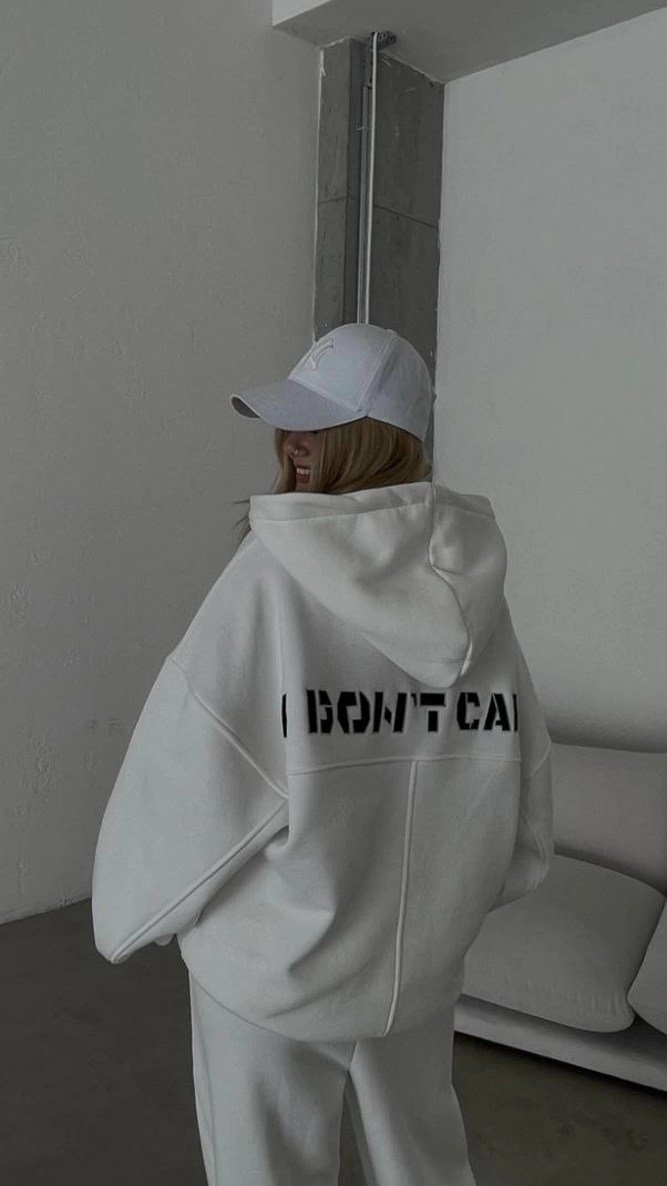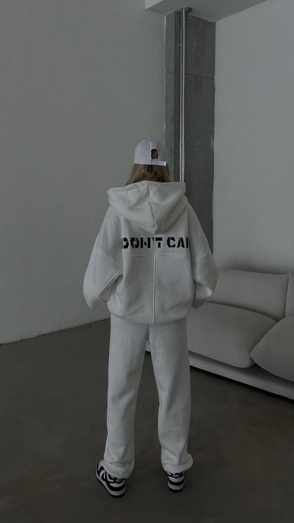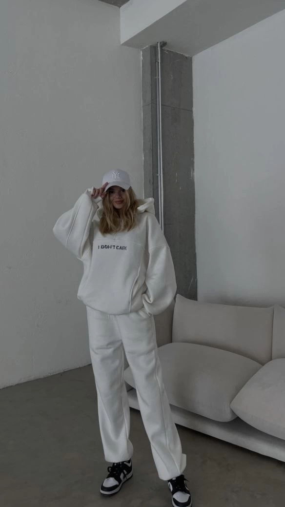 Nakış İşlemeli Üç İplik Sweat Takım- Beyaz